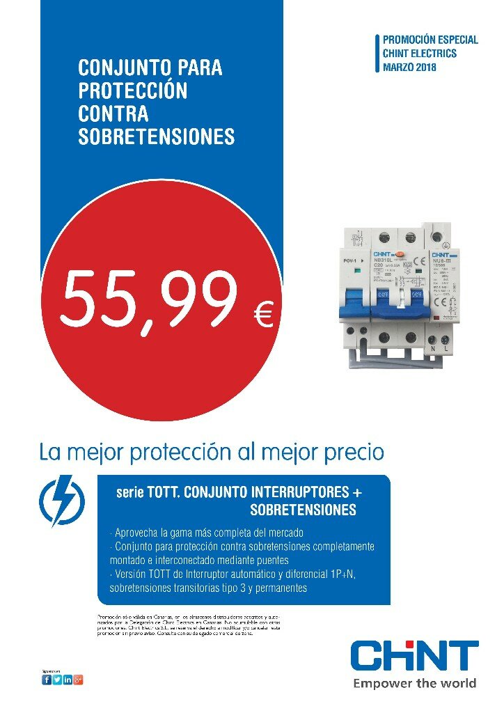 De la mano de CHINT Electrics, tercer fabricante internacional líder en material eléctrico de baja tensión, y uno de los referentes en media y alta tensión, te ofrecemos una magnifica oferta en este conjunto de proteccion de sobretensiones.